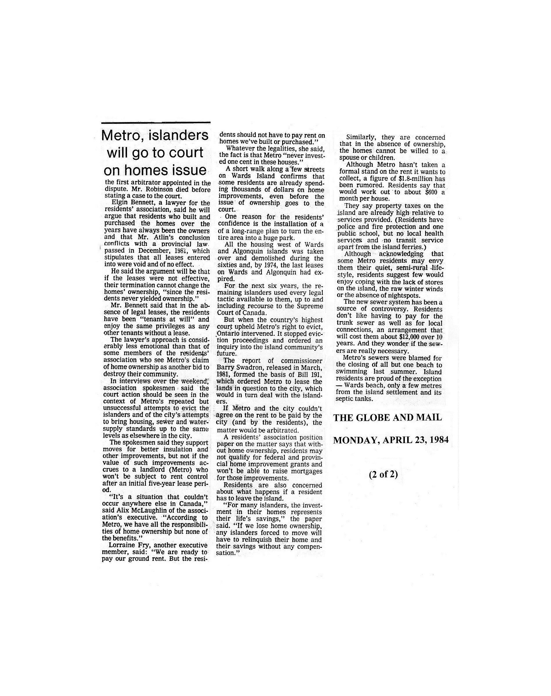Created by: Mary Partridge, Joanna Kidd, and Annie Szamosi Details: A contemporary documentary of the Toronto Island Community. Date: Created on: 2014 Provenance: via YouTube Notes:  Short history of the settling and changes to the community provided up to present.