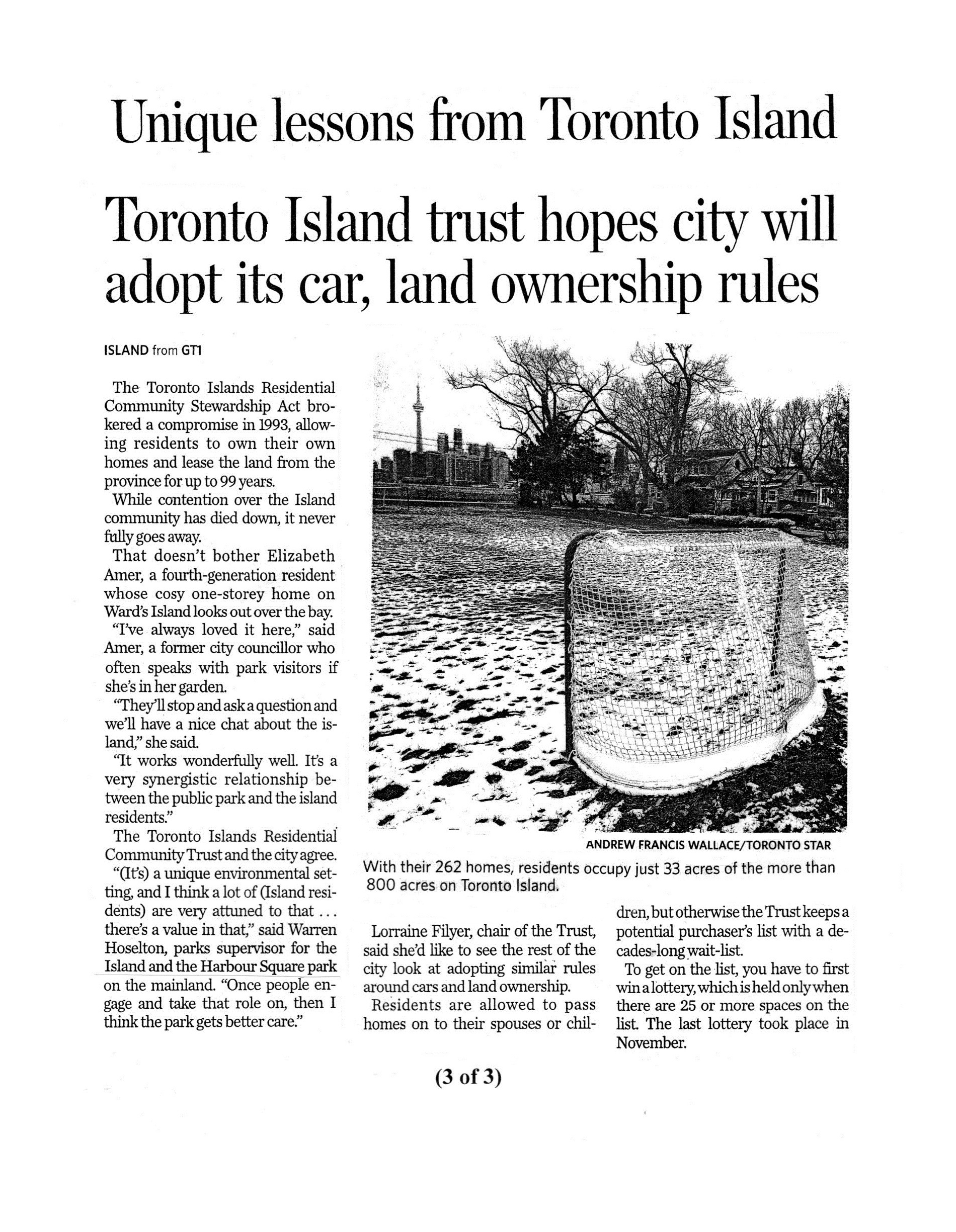 • On behalf of: Toronto Island Residents Association (TIRA)