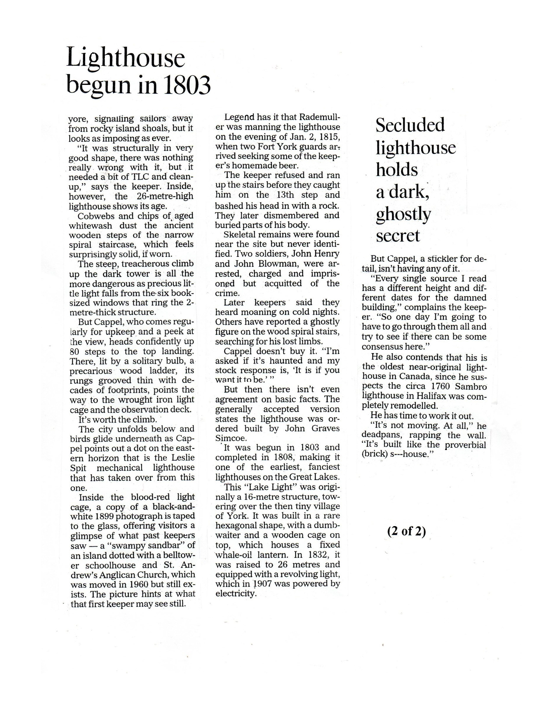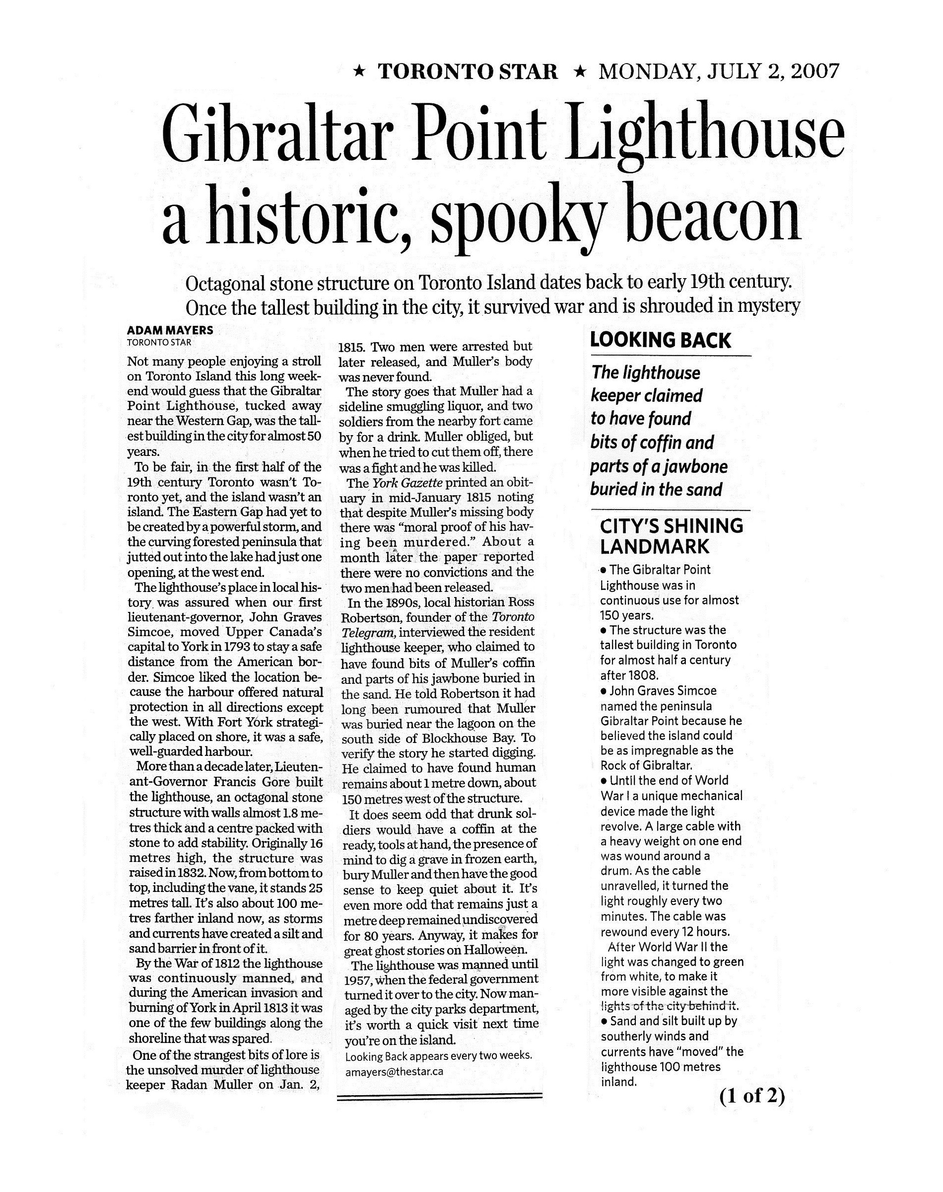 Robertson’s Landmarks excerpt – Gibraltar Point Lighthouse